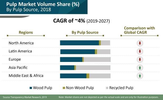 According to a report by Transparency Market Research (TMR), the global pulp market is estimated to expand at a CAGR of 4% (in terms of revenue) enabling it to reach USD 333 bn, during the forecast period of 2019-2027.