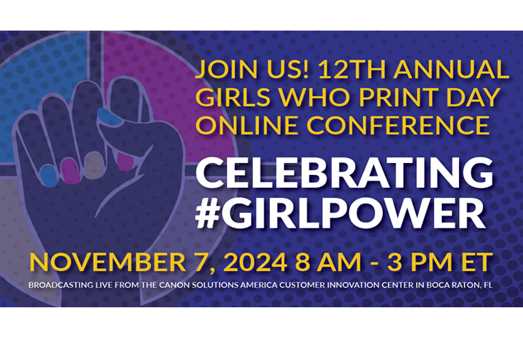 Attendees will hear from panellists and presenters on career growth, work-life balance, leadership, story selling, creating your path, and more. The event includes details for the new membership programme and industry partnerships, updates from Girls Who Print EMEA and Africa, and a live, virtual tour of the Canon Solutions America Customer Innovation Center in Boca Raton, Florida.