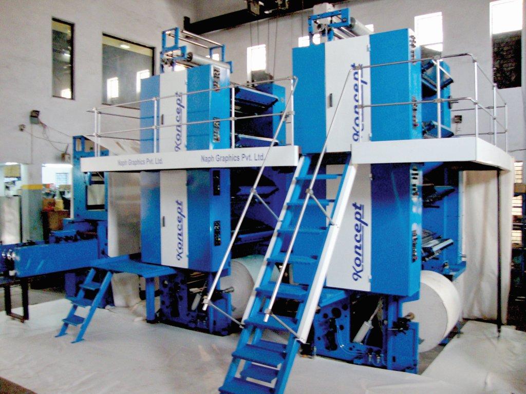 Naph Graphics' Koncept web offset was launched in PrintPack India 2009. It can produce 35,000 copies per hour. Of the 55 Koncepts installed worldwide, 40 are deployed to Indian majors like Dainik Jagran, Sanmarg, and Kerela Kaumudi among others.