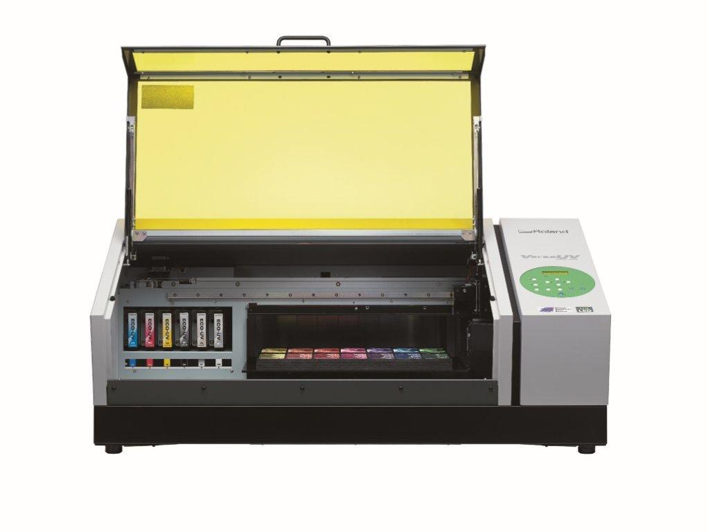 Roland DG's VersaUV LEF-20 was launch in 2013. The LEF-20 uses Roland’s robust CMYK, white and clear ECO-UV ink. Clear varnish can be layered for embossing and varnishing effects, and white ink can be printed as a spot colour, or behind CMYK to deliver stand-out colours.