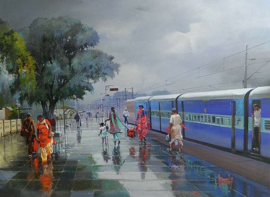 Biswaal had a vision to look at the railways from an artistic point of view, the noise which a train makes while entering into the station and also while exiting the station, the chaiwala offering chai to the travellers. These everyday slices of life moments have been captured by Biswaal. These have inspired him to produce a series of paintings in watercolours.