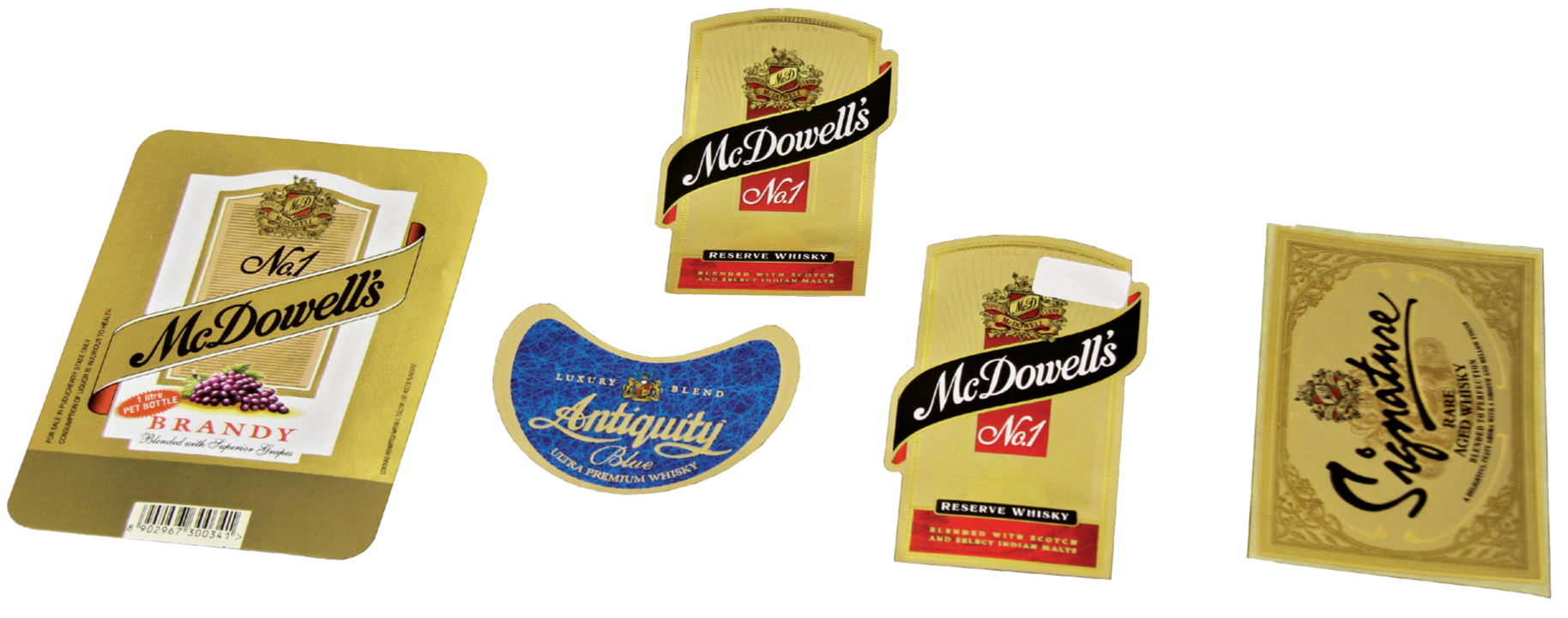 PrintWeek India Label Printer of the Year 2011 - Manohar Packaging. An array of processes were involved for producing the Signature Rare Whisky label which involved printing on Omet narrow-web press, double hot foil stamping, micro and deep embossing, and die-cutting all in one pass on 80 gsm mirror coat paper