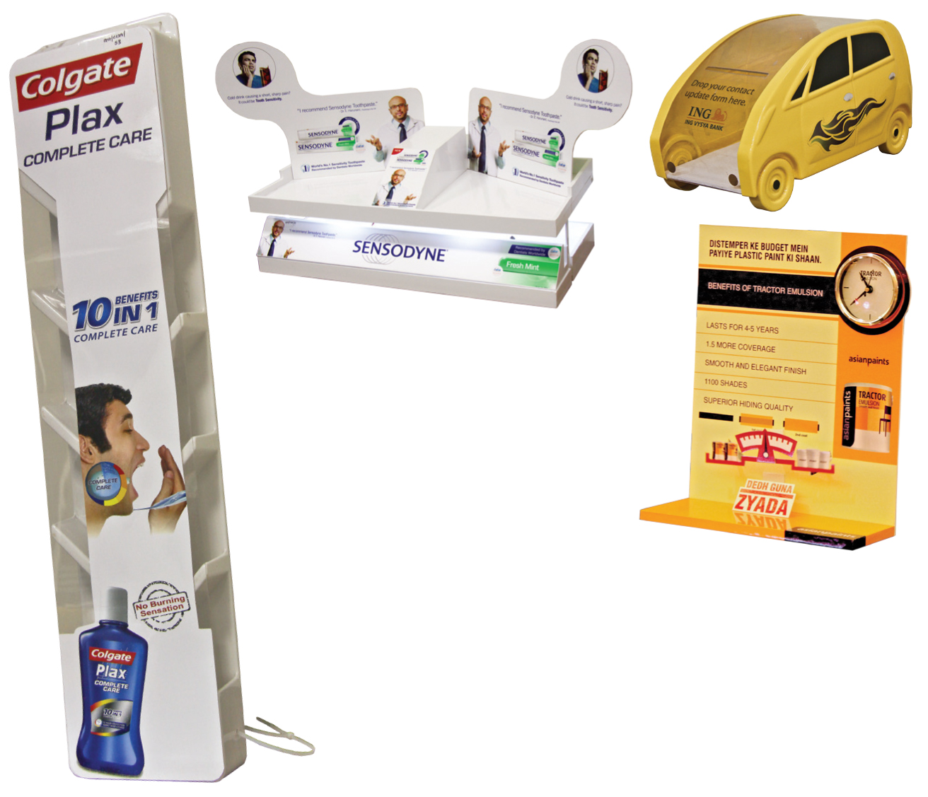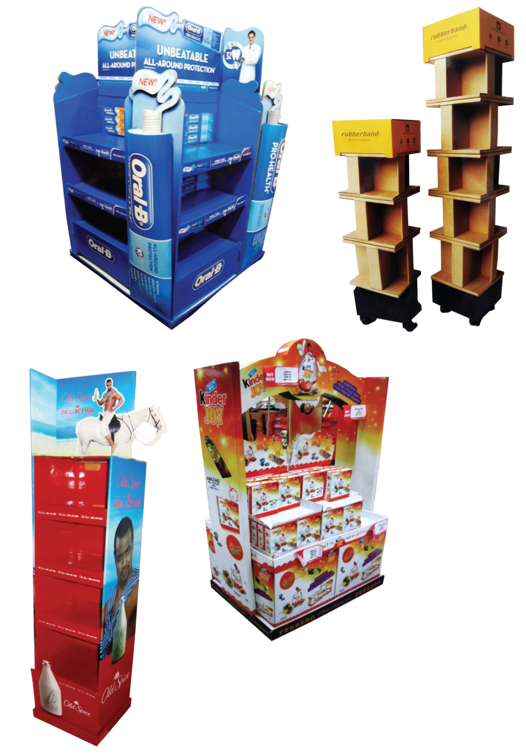 PrintWeek India Point-Of-Purchase Printer of the Year 2013 - Jayna Packaging. Kinder Joy Arch display, Old Spice standing unit, Oral B island display and Rubber Band floor standing unit. All the entries were made from 100% recyclable heavy duty corrugated board with five-colour printing.