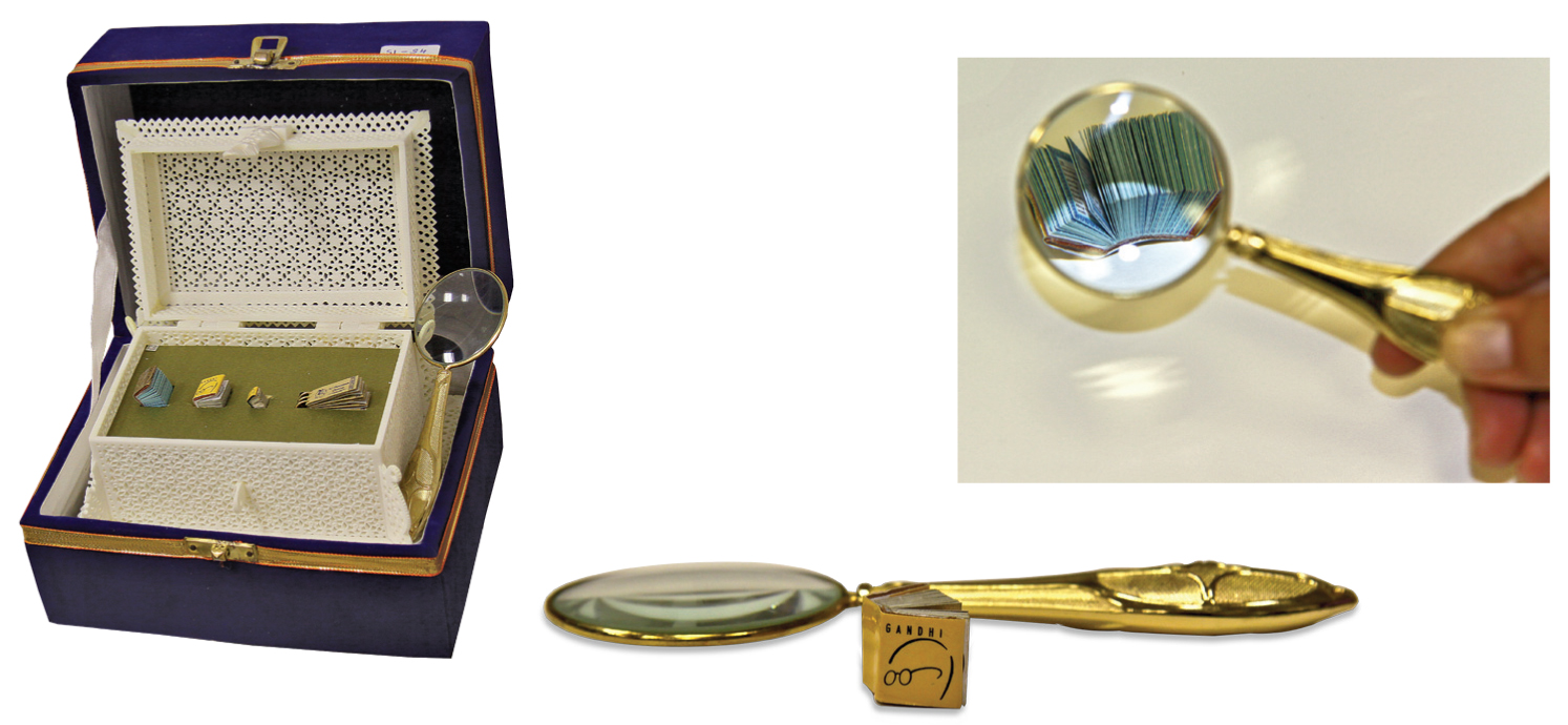 PrintWeek India Screen Printer of the Year 2011 - Eshwara Screens. Eswara sent in three miniature books of Mahatma Gandhi’s biography. The three were sized 5x5mm consisting 144 pages; 11x13mm with 124 pages; 10x12mm with 168 pages; and a 19-page palm leaf book in 24x8.5mm size, which amazed the judges