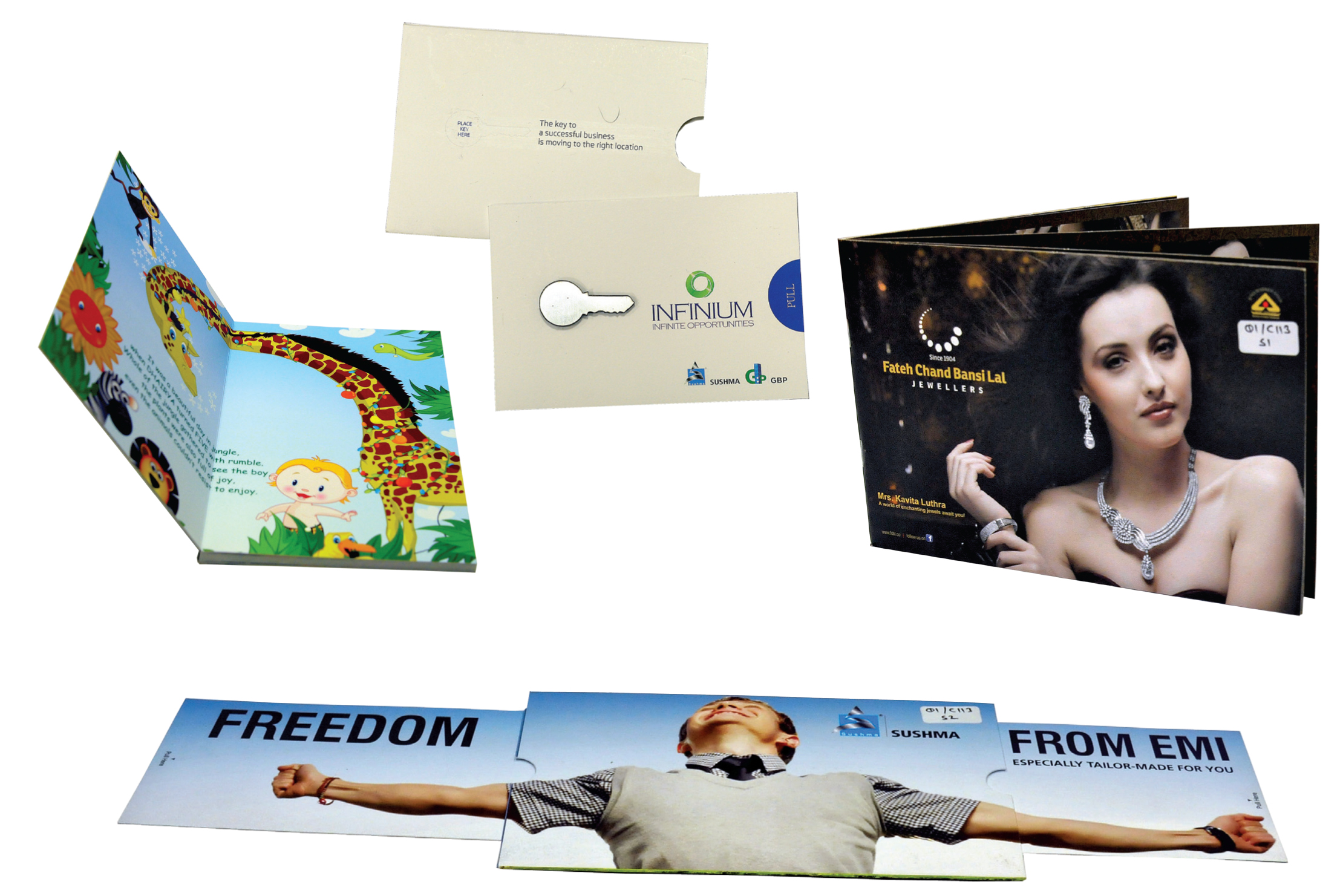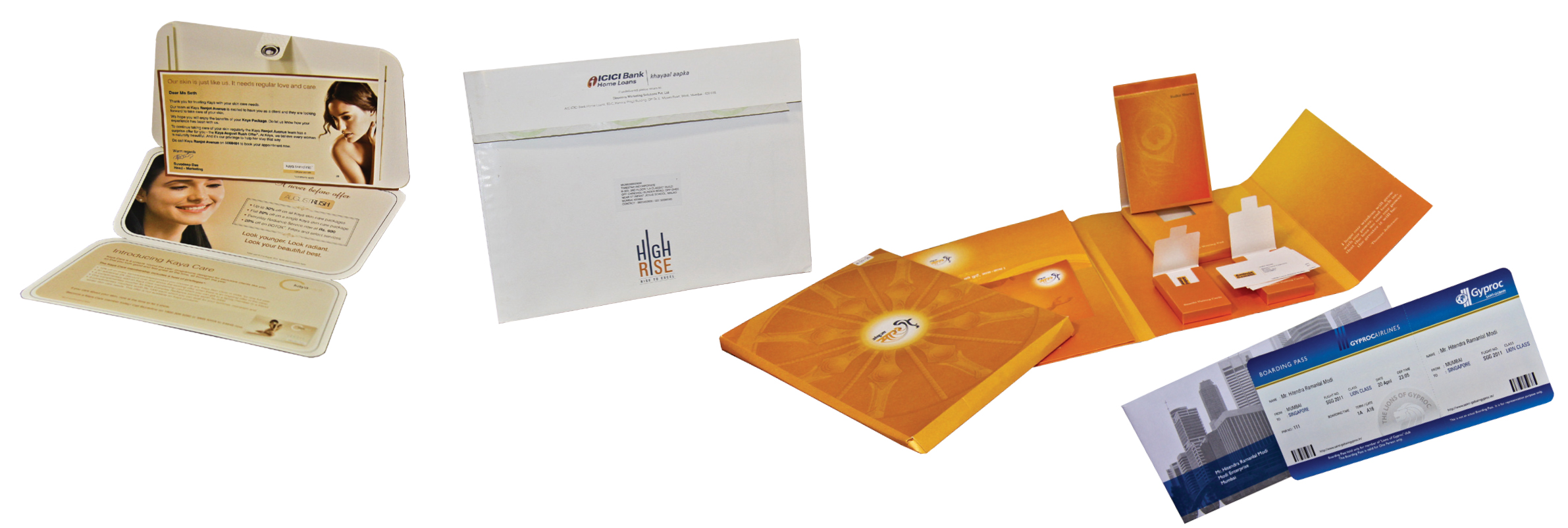 PrintWeek India Personalisation, VDP & Transpromo Printer of the Year 2013 - Buzz IMC. All jobs were printed in CMYK using HP Indigo 5500 on a Galgo 270gsm substrate. All the samples differed in finishing, with varied post-press processes like centre stitching, die-cutting, back-to-back pasting and laser-cutting being used