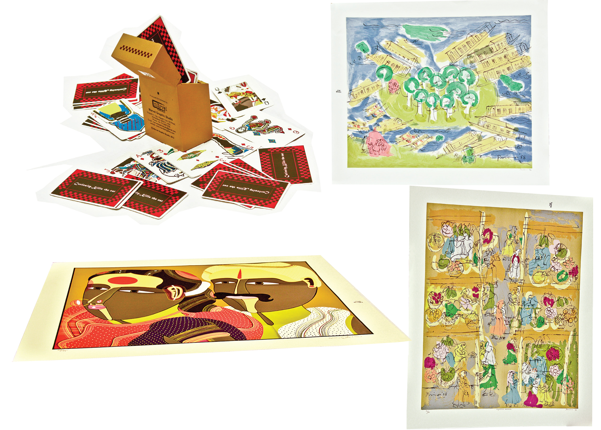 PrintWeek India Fine Art Printer of the Year 2012 - Marvel Graphic Studio. According to Marvel, the process to print – Curiosity Kills the Cat took four months, which included concept, die-cutting, separation and other detailed process. Printing 250 sets of cards (54 cards per set) took 60 days. There are over eight to nine colours/screens per card and the paper used in this serigraph is Somerset Satin White of 300gsm
