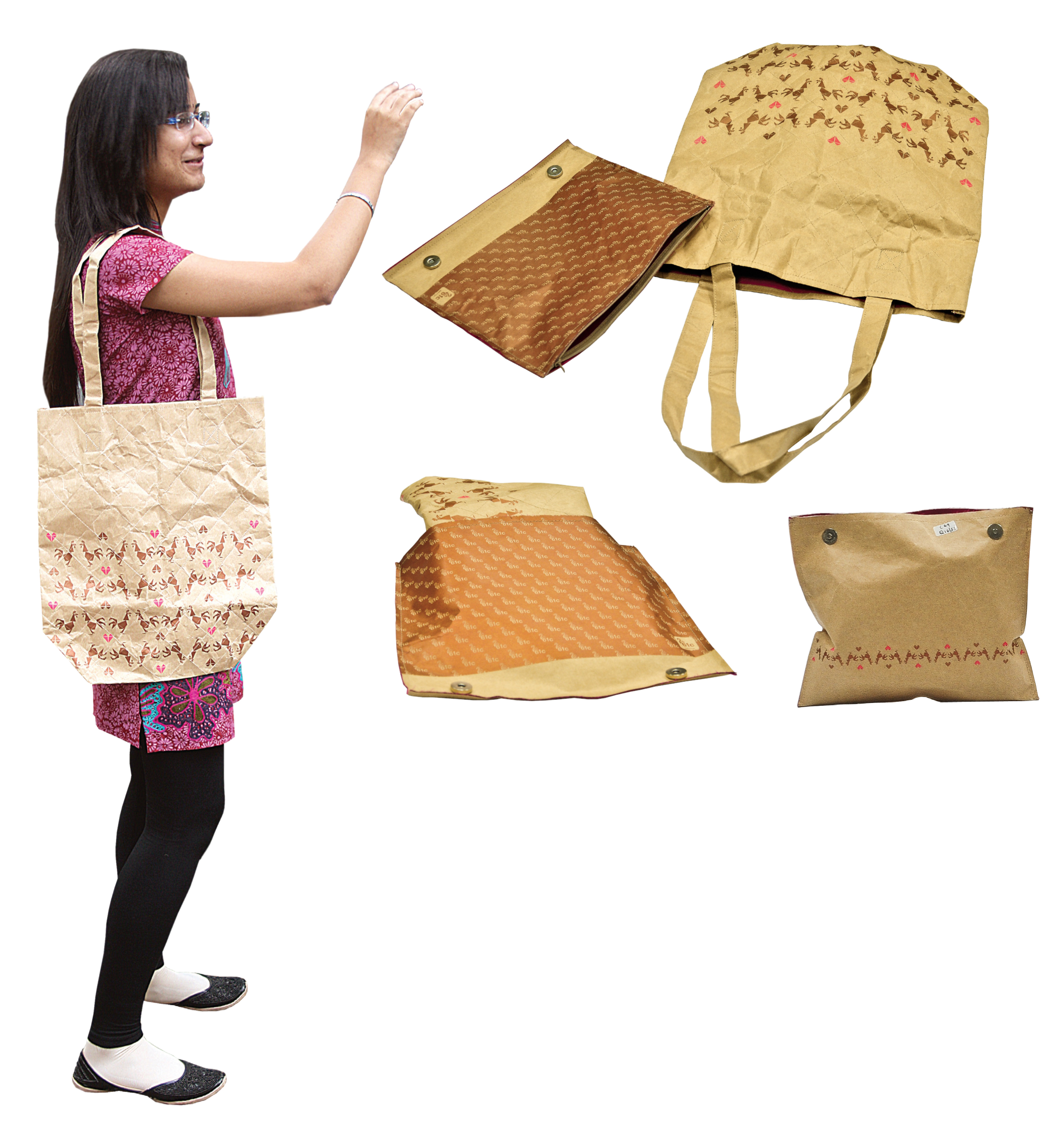 PrintWeek India Innovative Printer of the Year 2012 - Parksons Graphics. used a Sakurai flatbed press, outputting screen positive with a Prinergy workflow. Stitching was used as a post-press force. The bag is designed to be carrybag – a clutch and collapses into a travel pouch. The Bag produced for 61c had a run-length of 500 and used 105gsm Tyvek paper