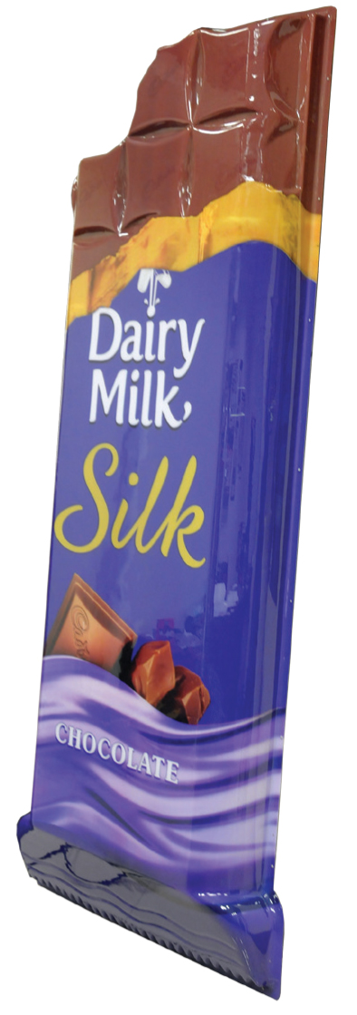 PrintWeek India Innovative Printer of the Year 2013 - Spectrum Scan. The Cadbury thermoformed large-format is a high-impact display item. The back-lit, print and formed backlit signage was designed in-house. The pre-press included colour and graphic correction and pre-distortion to compensate for thermoform distortion. Semi-automatic screen printing machine was used to print the PET G acrylic sheets. In-house thermoforming machine was used to form the shape of the bottle. CMYK colour was used to produce and a special colour was used to compensate for the distortion of colour and day and night effect