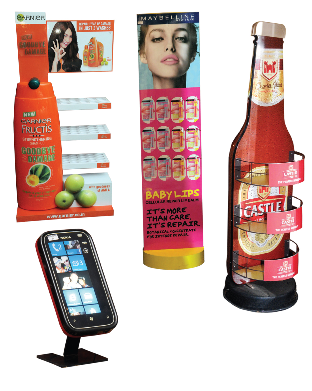 PrintWeek India Point-Of-Purchase Printer of the Year 2013 - Spectrum Scan. The Babylip FSUs has been printed on self-adhesive vinyl using HP latex 65500 six-colour wide-format digital press and mounted on the fabricated FSU with sunboard. The POP for Nokia is printed on the Atma screen printing machine, which has been thermoformed for shape and fabricated to form the display with programmed LED lighting