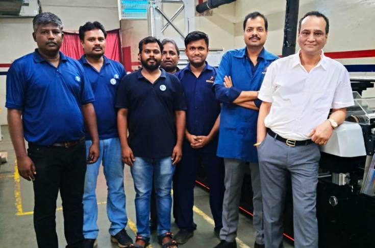 Prasanna Sahu (r) with FIG and Barcom teams alongside the Mark Andy Pro Series