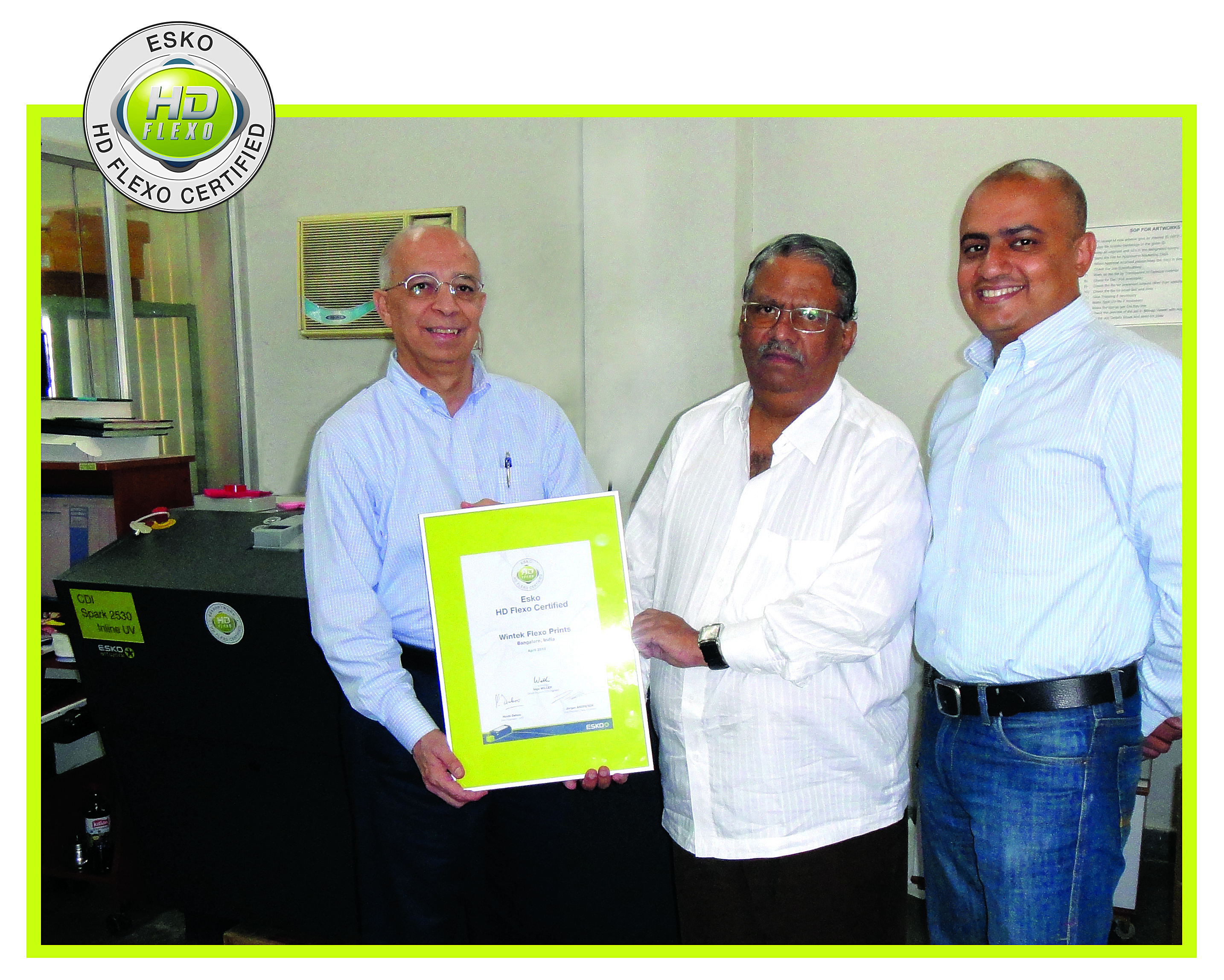 Hoshi Deboo, president, Esko Asia Pacific conferred the HD certification to the leading Indian label printer Wintek Flexo Prints in Bengaluru on 28 September, 2012.