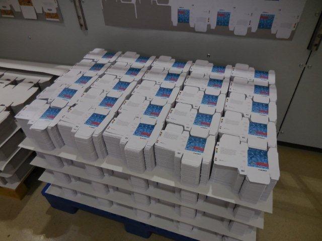 A final RSC box delivered by the Lila. The machine uses HHS gluing machine to eliminate stapling in the corrugated boxes, an innovation from Bobst