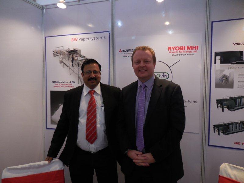 Provin Techno was present with its BW Papersystems from MarquipWardUnited as well as Ryobi MHI presses. According to Peter Stokley (r), BW Papersystems’ SMH Sheeter - eCon is a popular sheeting machines. In India, there are three, two at ITC and one at Parksons Packaging.