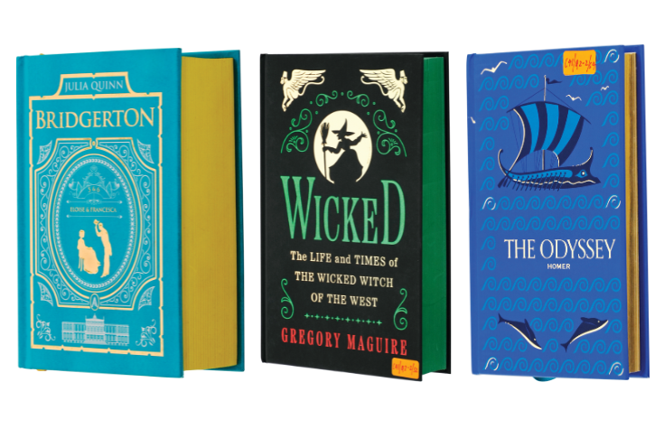 Wicked for HarperCollins, a black book that featured three different foils — green, red, and gold — involved several operations. Post-press processes included UV inks on the case along with a green-coloured edge to match the foil on the cover.