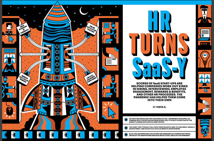 The third award was given for Best Illustration Spread to HR Turns SaaS-Y in the 26 June 2022 issue. The story by Vidya S spoke of how SaaS start-ups are helping companies iron out kinks in their HR processes including in hiring, interviewing, employee engagement, and rewards & benefits, among other HR processes.