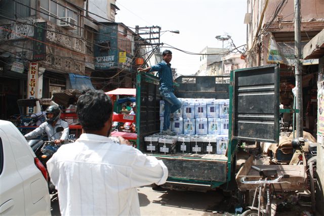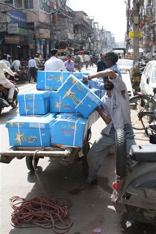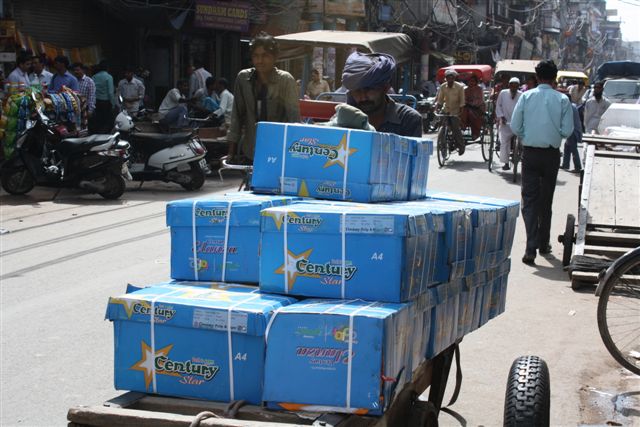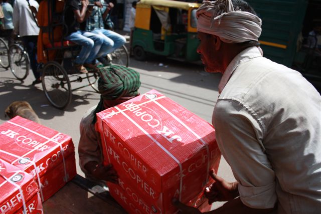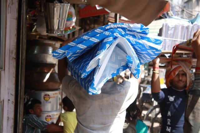One of Chawri Bazaar's paper vendors overseeing an outgoing order