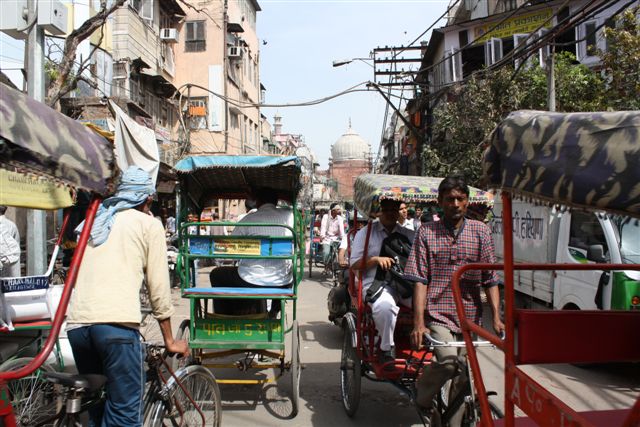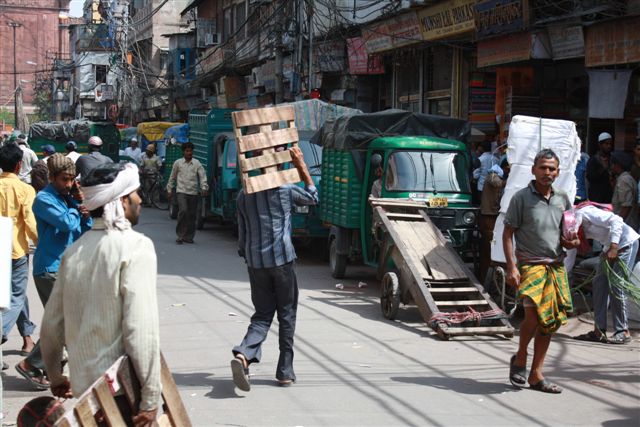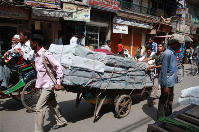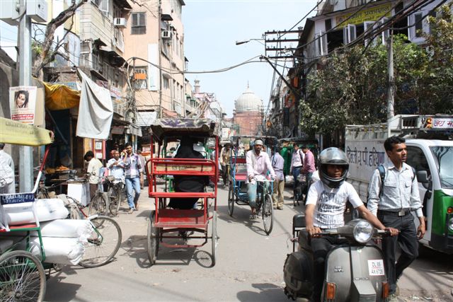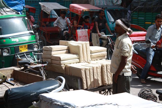 Chawri Bazaar is a busy road as labourers, cars, rickshaws, scooters and walkers battle for the road during the peak market hours