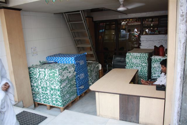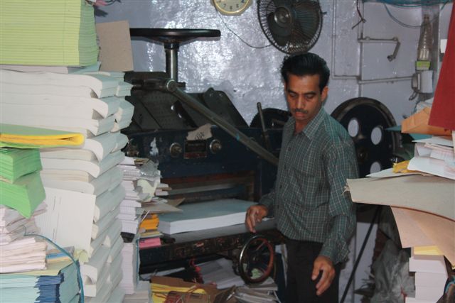 Waiting for labour to unload the paper stock from the tempo; which is usually done in a record time
