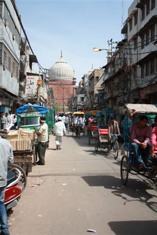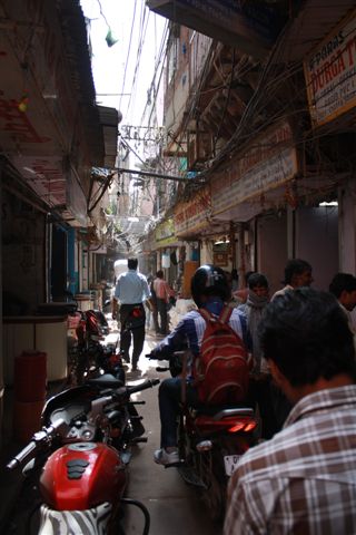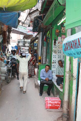 A narrow bylane which leads to Nai Sarak which is famous for books and ladies garments