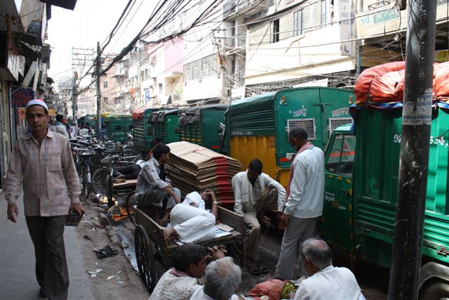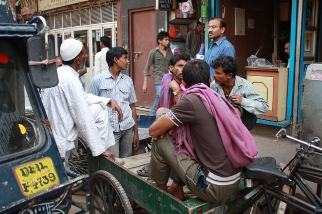 The labour-force on daily wages can be seen waiting for work at Chawri Bazaar