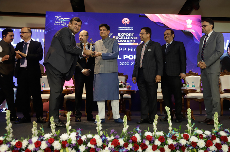 The company received the awards in BOPP film and metallised polyester film categories for the period 2019-20 and 2020-21.