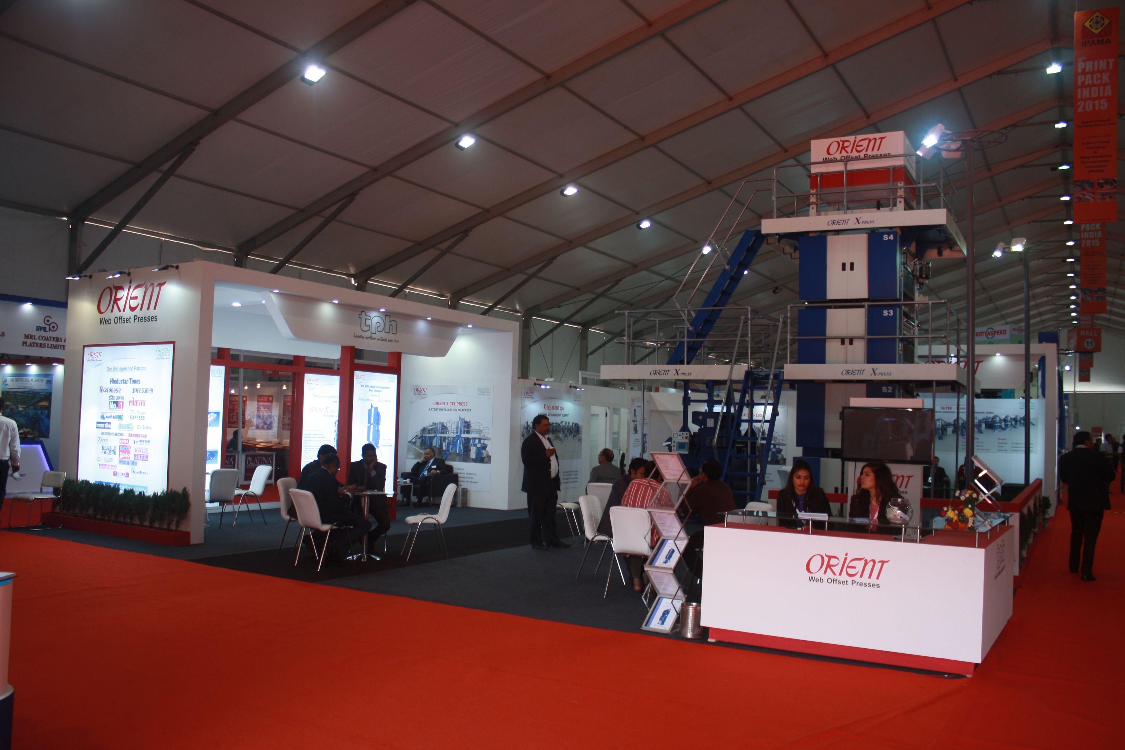 Closer home, TPH has sold its first automated four-colour book printing kit to Tamil Arasu Press in Tamil Nadu, which is part of the government printing press. Recently, the Noida-based Hindi daily Amar Ujala purchased two Orient X-Press presses, which can produce 50,000 copies per hour. There is also one Orient X-Cel shaft-less web offset press at Marathi daily Lokmat, and one Orient X-Cel at the Bhaskar Group. The machine can print at the speed of 36,000 impressions per hour.
