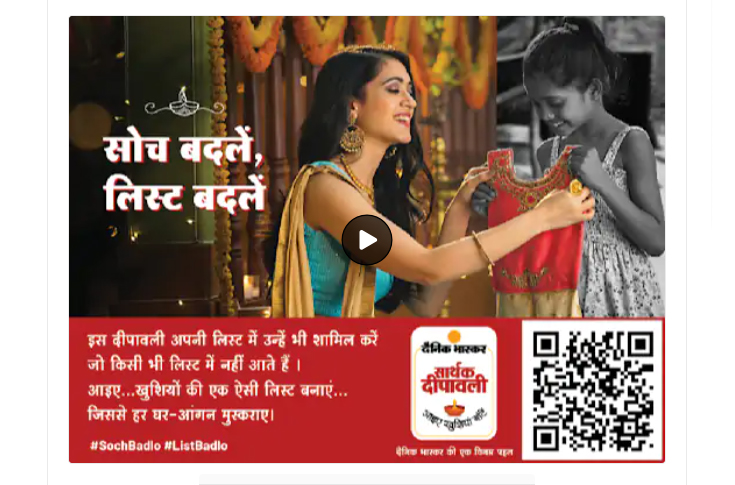 Pawan Pandey, head of brand and product marketing, Dainik Bhaskar Group said, “Sarthak Deepawali is one of our flagship CSR initiatives, encouraging people to spread joy among the less privileged. Through our campaign #SochBadlo #ListBadlo we aim to inspire people to include those who may not be on anyone’s list this Diwali. Together, let’s inspire our friends and families to brighten the lives of those who need it most.”