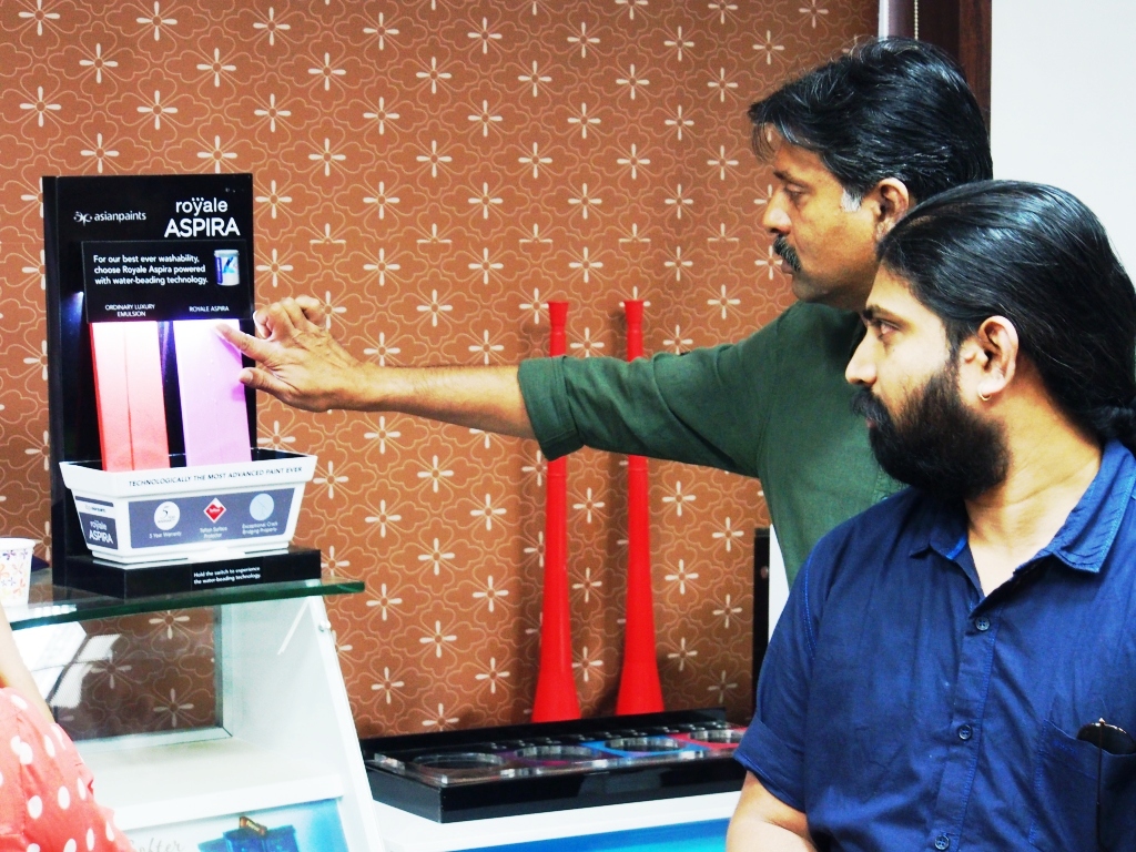 With 20+ years at Spectrum, the general manager S Rajgopal (r), heads the tech team at Spectrum. Rajgopal tours the designers through the Spectrum Bazaar browsing through the numerous POP success stories