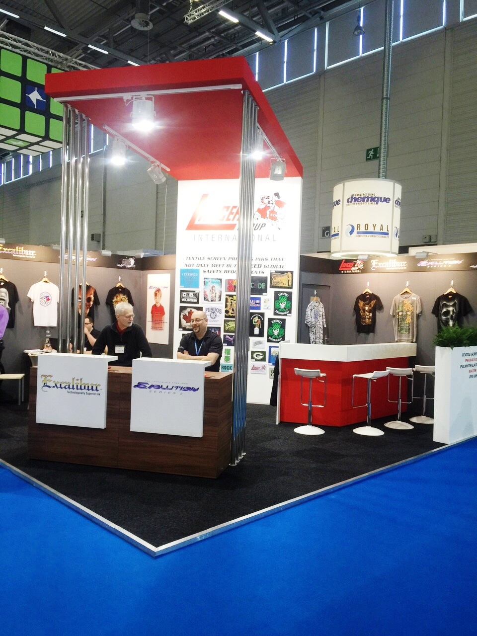 Sakurai stall at show. The MSAII series Sakurai stop cylinder screen printing machine is a favourite for textile transfers. Sakurai agent in India, Kunal Enterprises has installed the MS80A model at Quenby