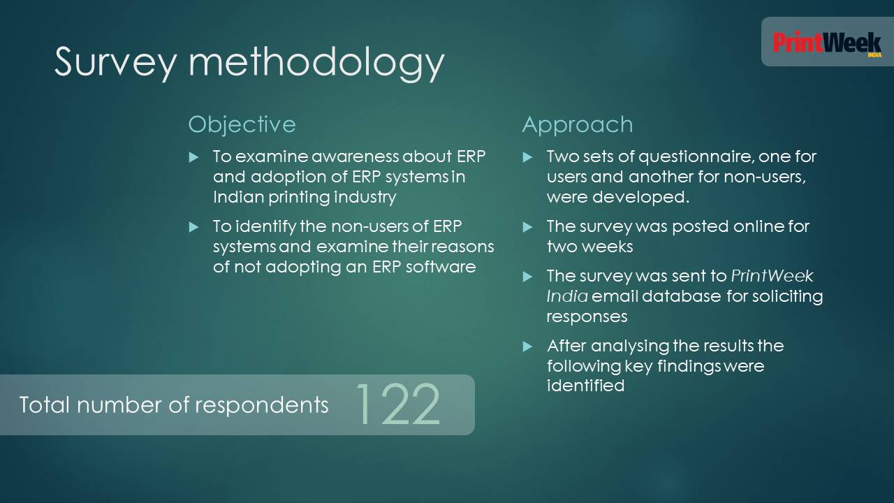 Of the 122 responses we received 31.10% are non-users (of ERP). The respondents' organisation represented diverse company sizes ranging from small print shops to bigger corporates with the smaller and mid-size companies forming the major chunk of non-users