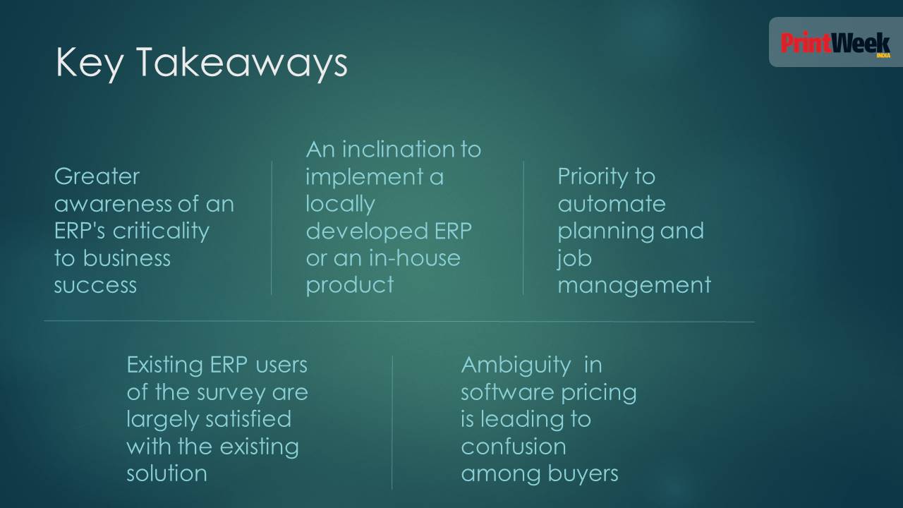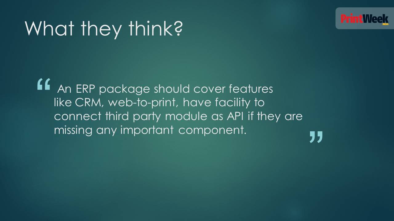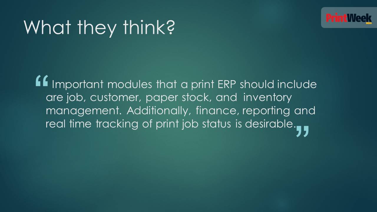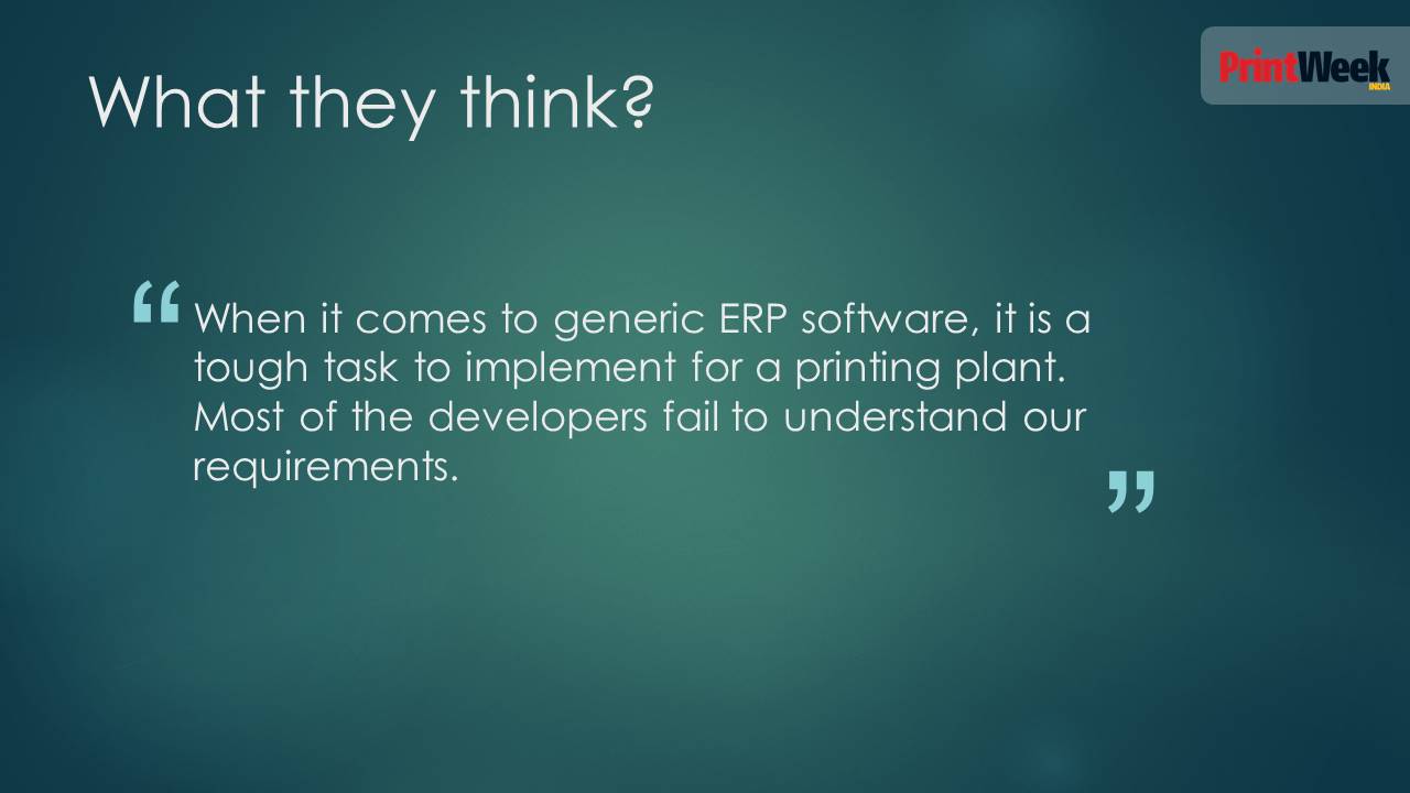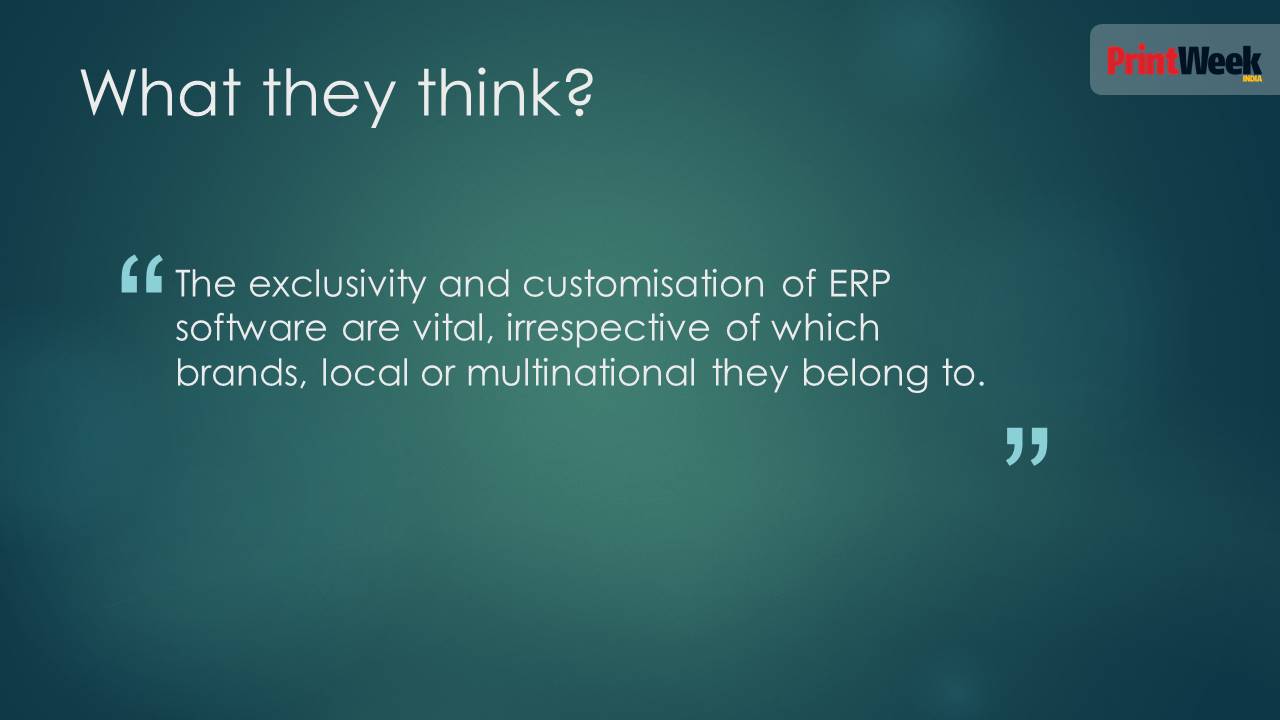 Summing it up: In print specific ERPs, both national and international service providers bring with them a wealth of experience, solving umpteen industry specific problems, evolving best practices and continue investing in R&D for the same. This is a good sign