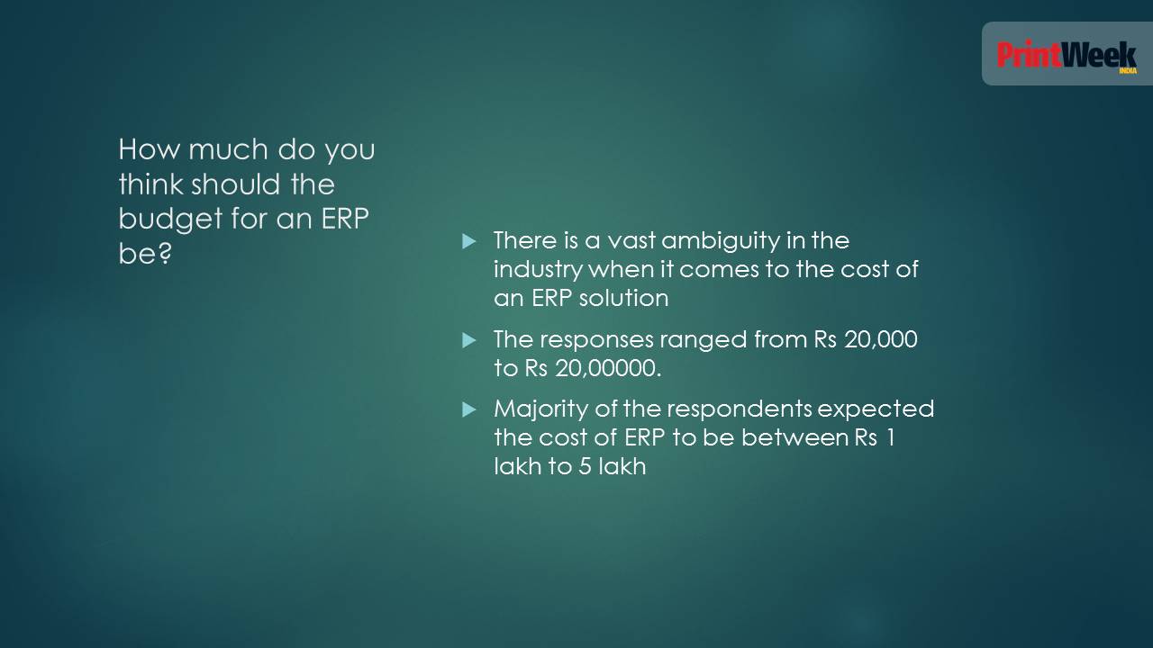 With ever-reducing margins and increasing competition, print organisations are compelled to ensure that better cost control measures are in place, along with effective transparemcy and pertinent need to deploy best practises. For this, many of them now see the benefits and requirement of an ERP system. Sriraam Selvam crunches the numbers from the PrintWeek India Survey