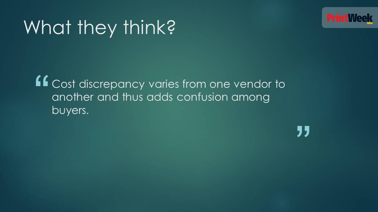 The response was the most varied from Rs 20,000 to Rs 20,00,000 and a majority averaging between Rs one to five lakhs. One respondent said, "Cost discrepeancy varies from one vendor to another and thus adds confusion among buyers."