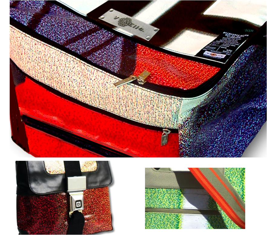 Vinyl billboards are used nationwide as temporary banner advertisements and are usually discarded into landfills. The US-based Vy & Elle collects these vinyl billboards and repurposes them to make attractive bags.
