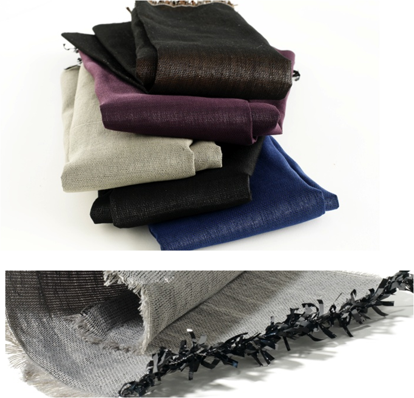 Sonic Fabric, an extremely unique textile woven from 50% recycled audio cassette tape and 50% polyester is audible (running a tape head over it) and upcycled product