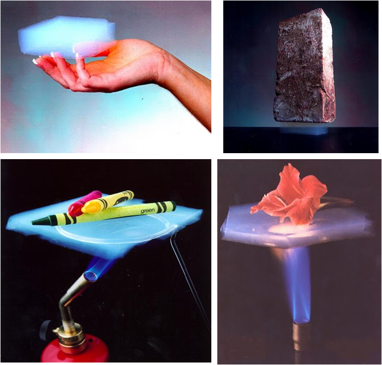 Aerogel is a low-density solid-state material derived from gel in which the liquid component of the gel has been replaced with gas. It is a fantastic insulator. It is nicknamed as frozen smoke, solid smoke or blue smoke due to its semi-transparent nature and the way light scatters in the material.