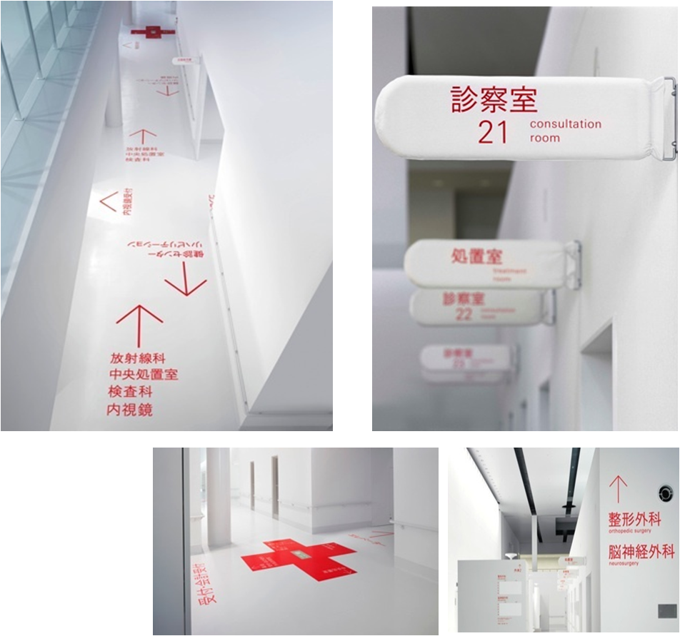 A designer Kenya Hara developed signages for the Katta Civic Polyclinic, which increases visibility due to the use of large type, and type laid directly into the floor. The change in ambiance has resulted in 20% improvement in recovery of patients.