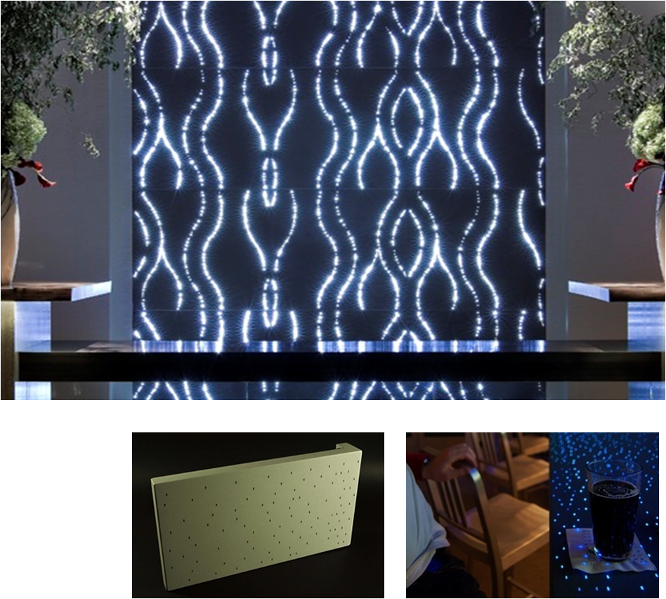 This is a concrete video screen. Fibre optics are embedded in to the concrete and the wall functions as a screen