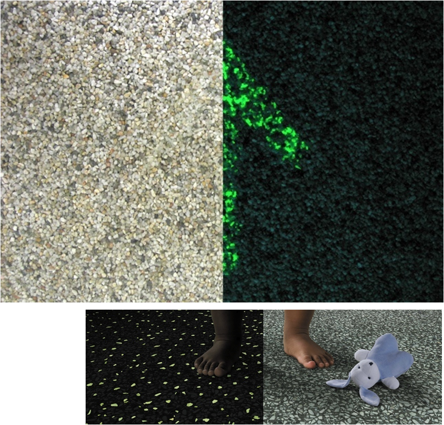 S Lövenstein BV integrates luminescent particles within gravel floors in order to enhance the emergency-exit signage within a building.