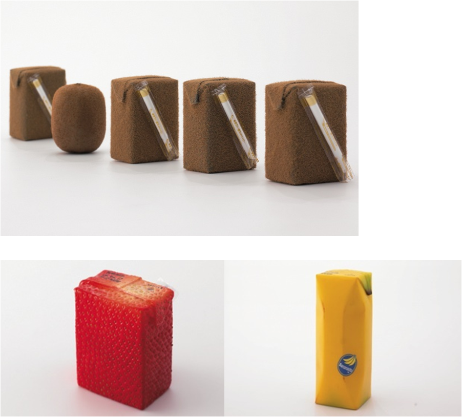 Juice Skin, haptic packaging designed by Naoto Fukasawa. He changed the surface of the package to imitate the colour and texture of the fruit skin