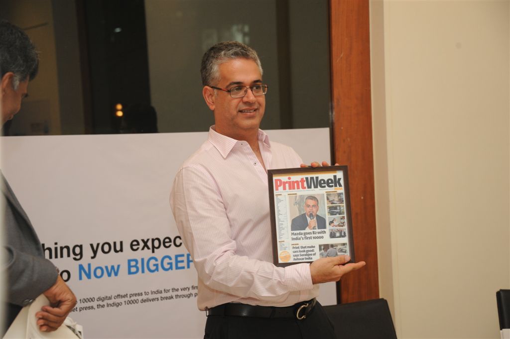 Each of the participant in the Print Yatra took home an Indigo 10000 print. This is Shireesh Sabnis of Publicis in the customised Mazda calendar
