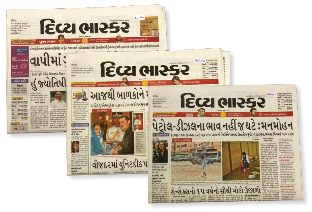 PrintWeek India Newspaper Printer of the Year 2009 - Divya Bhaskar. The DB Corp which publishes Divya Bhaskar invested in KBA presses at Bengaluru, Jaipur and Ahmedabad, introducing gate fold concept in the country for the first time on KBA Bengaluru