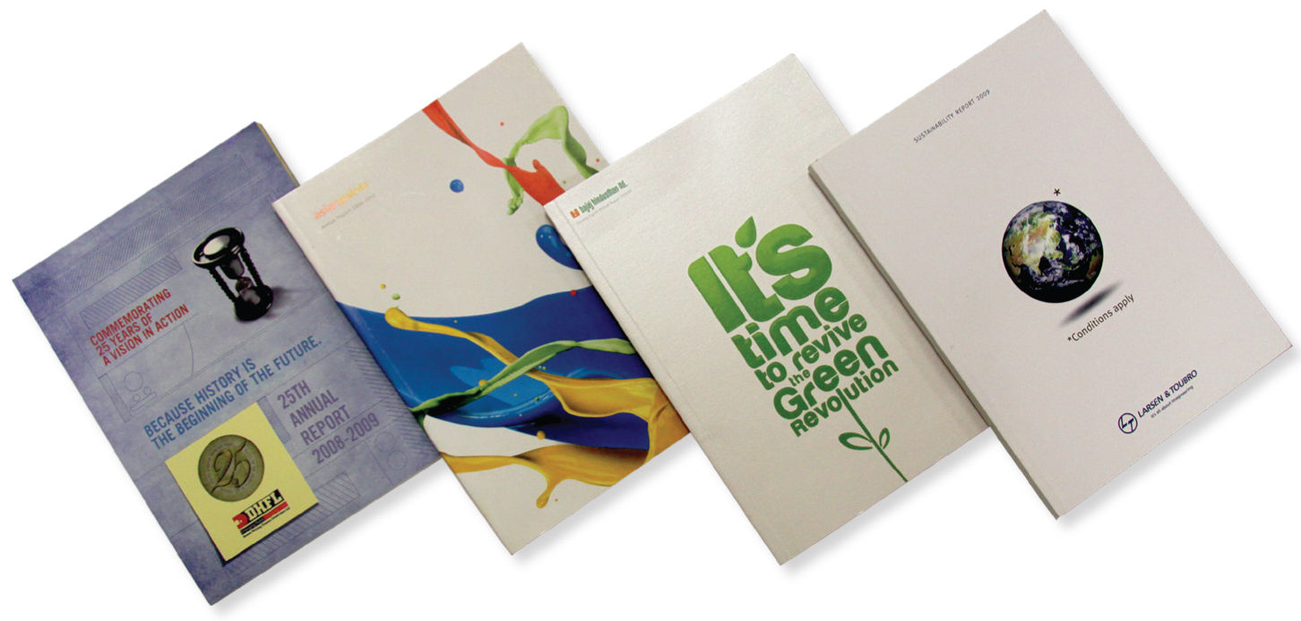 PrintWeek India report & accounts printer of the Year 2010 - Silverpoint Press. According to Silverpoint, the Larsen & Toubro and Bajaj Hindustan work had satin aqueous on all pages, while the DHFL had silver foiling on the cover