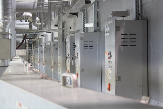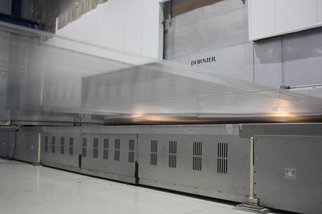 More than 10-metre-long heating chamber stretch the film more than eight metres width. These heating chambers run electric heaters