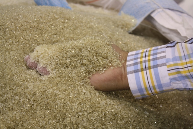 White chips are made of recycled material will be used for film manufacturing again with a mix of virgin white chips
