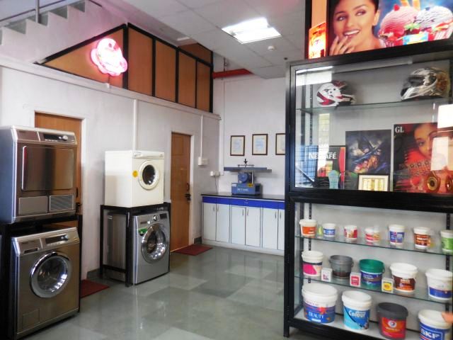 The print demo centre and testing facilities are about finding the optimum ink solution. Industrial washing machines can be seen, which are used to test inks on textile