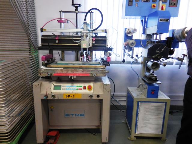 The screen printing demo centre has machines to check the ink performance. Seen here, a screen printing machine (l) from Atma and a heat transfer label printing machine