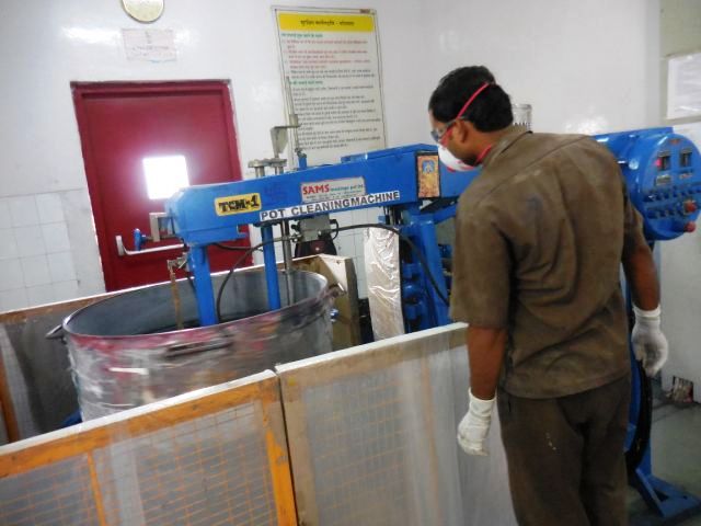 After the manufacturing is complete, the vessels are thoroughly cleaned in the pot cleaning machine to avoid any contamination