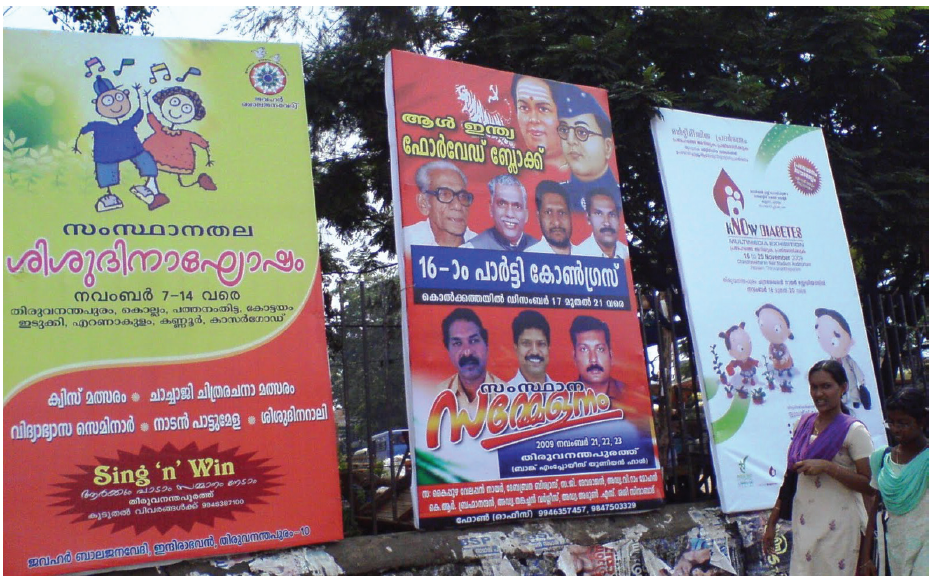 Flex is ubiquitous in Kerala. In any nook and corner of the state one will see flexs of ministers, politicians, religious leaders, godmen and the local heroes. These flexs are also seasonal. During the World Cup, a flex war had sparked among the locals in villages and towns, with huge flexes of fans’ favourite teams installed on the roadside. Whenever the SSC and HSC results are announced, flexs of students who have scored the highest marks are dispalyed; you will also see flexs publicising the festivals at temples or churches; and then there are the cinema publicity flexs.
