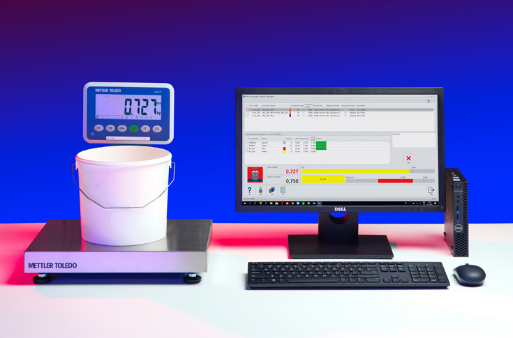 Colorsat FCS’s automatic ink recipe calculations enable spot colours to be prepared, on target and in the exact quantity needed for the printing job, without needing to produce excess quantities. It provides the formula of the base colours in exact weights, then leads the operator through a controlled weighing process, using a precision Mettler-Toledo scale, to create the colour. Inks returned from flexo chamber doctor chambers on previous jobs can also be calculated into new recipes, keeping waste to a minimum.